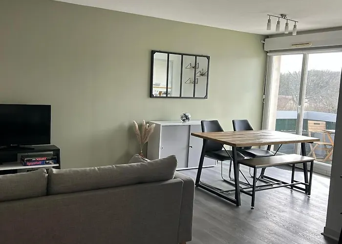 Appartement Dans Residence Allonnes Allonnes 设有设施齐全的厨房和配平板电视,阳台和沙发的客房. 公寓距离勒芒24小时耐力赛博物馆3.2公里,距离泰斯美术馆有7公里.